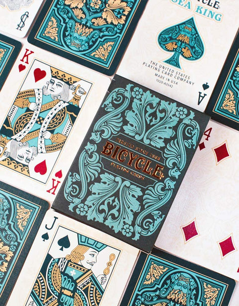 Bicycle® Sea King pristato naujieną–vandenynų mėlynumo ir turkio spalvų kortų kaladę. Išskirtinis dizainas ir spalvų paletė–tai puikus egzempliorius papildyti kortų kolekcijai. Kortos pateikiamos prabangioje dėžutėje dekoruotoje įspaudais ir metalizuota folija, tad atrodo ypač prabangiai ir karališkai. Kortos tinka tiek žaidimams, tiek kortų triukams.