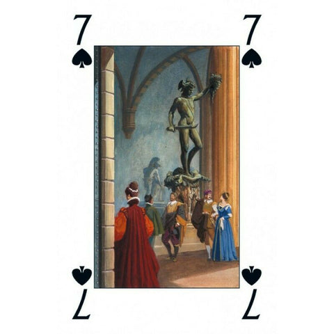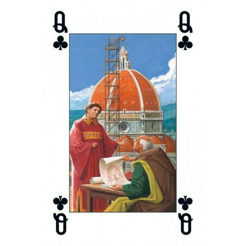 Žaidimo kortos, kuriose vaizduojama Florencija–meno ir turtingos istorijos miestas.