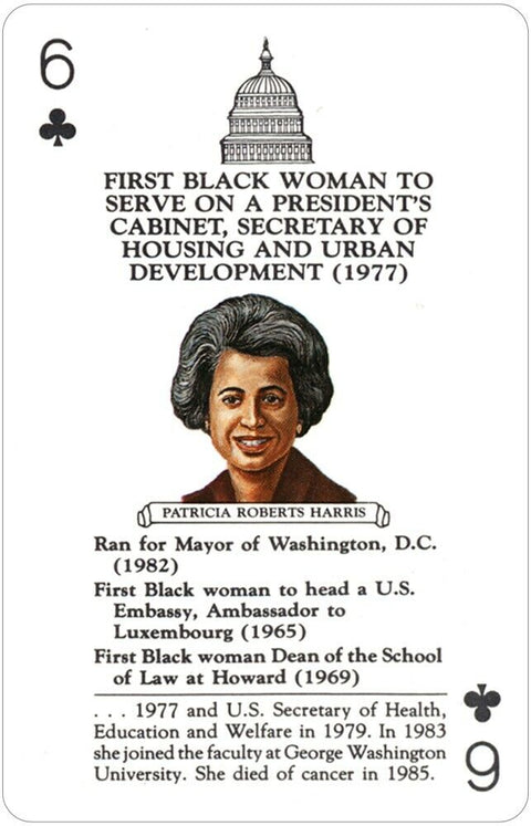 Šios afroamerikietės yra Josephine Baker, Billie Holiday, Mabel Keaton Staupers ir Patricia Roberts Harris. Kiekvienoje kaladėje yra 52 kortos ir specialaus kortų žaidimo instrukcijos.