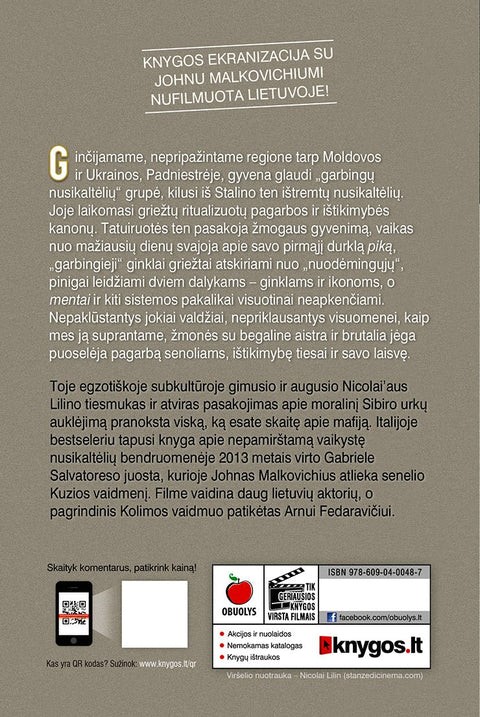 Toje egzotiškoje subkultūroje gimusio ir augusio Nikolajaus Lilino tiesmukas ir atviras pasakojimas apie moralinį Sibiro urkų auklėjimą pranoksta viską, ką esate skaitę apie mafiją. Italijoje bestseleriu tapusi knyga apie nepamirštamą vaikystę nusikaltėlių bendruomenėje šiais metais virto Gabriele Salvatores juosta, kurioje Johnas Malkovichius atlieka senelio Kuzios vaidmenį. Filme vaidina daug lietuvių aktorių, o pagrindinis Kolimos vaidmuo patikėtas Arnui Fedaravičiui.