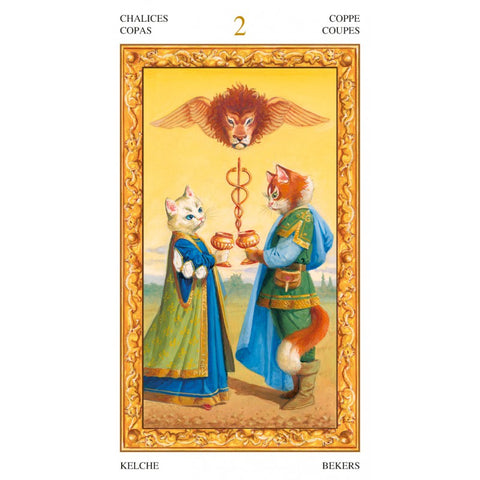 Šis Tarot turi devynis gyvenimus kaip ir katės. Paprasta ir linksma, šiek tiek nepagarbus, bet vis dar ištikimas tradiciniams simboliams. Puiki kaladė net pradedantiesiems ar tiems, kurie nori gilumo ir švelnumo. Tai tarsi skaityti Tarot su katinu - balta, natūraliai.