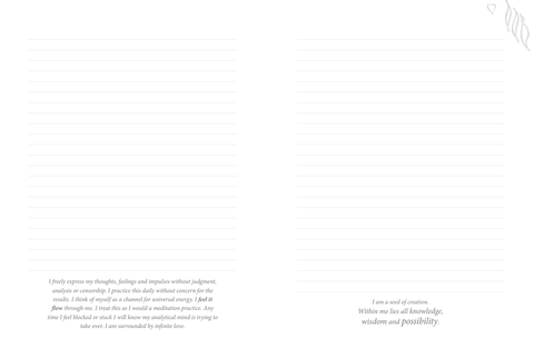 Šis prabangus iliustruotas žurnalas/užrašinė yra naujausias menininko ir autoriaus Toni Carmine Salerno pasiūlymas. Ji skirta būti jūsų šventa šventove; privati erdvė, į kurią galėsite atsitraukti, surinkti išsibarsčiusias mintis ir ištirti bei išreikšti giliausius savo širdies troškimus ir rūpesčius. Kiekvienas įkvepiantis meno kūrinys, žinutė ir patvirtinimas skatina pažvelgti į vidų, kad atskleistumėte daugiau nesenstančios tikrosios esmės, kūrybiškumo ir išminties. Yra 220 puslapių, aukščiausios kokybės ,be medienos, popieriaus su linijomis ir be, puslapių deriniu, kad tilptų visi jūsų saviraiškos aspektai. Apima 44 spalvotas Toni Carmine Salerno meno kūrinių reprodukcijas ir šio tikrai unikalaus ir įkvepiančio menininko sielos kupiną nuoširdų įžangą, teiginius, apmąstymus ir eilėraščius.